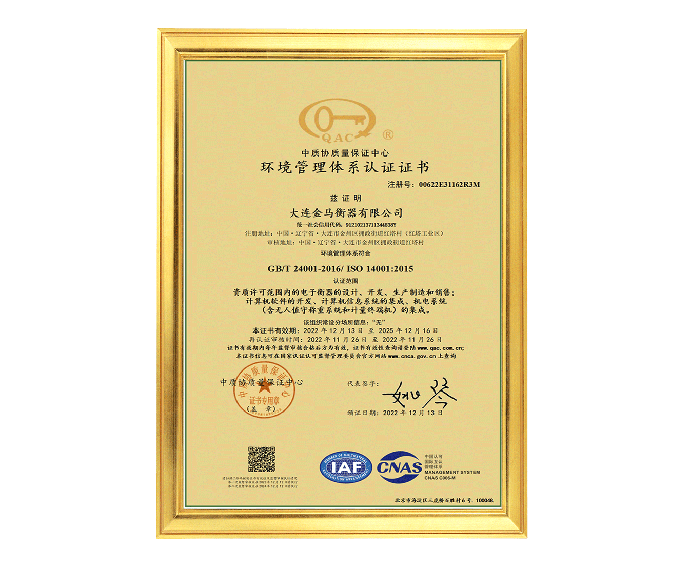 環(huán)境安全管理體系認(rèn)證證書
